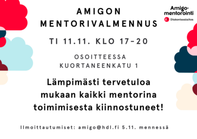 Elämää muuttavia kohtaamisia – omaehtoinen kansalaistoiminta nuorten tukena (pdf) (Suvi Ervamaa, Selvitys, HDL 2018) (Selvitys Helsingin Diakonissalaitoksen Amigo-mentoritoiminnan pitkäkestoisista vaikutuksista)
